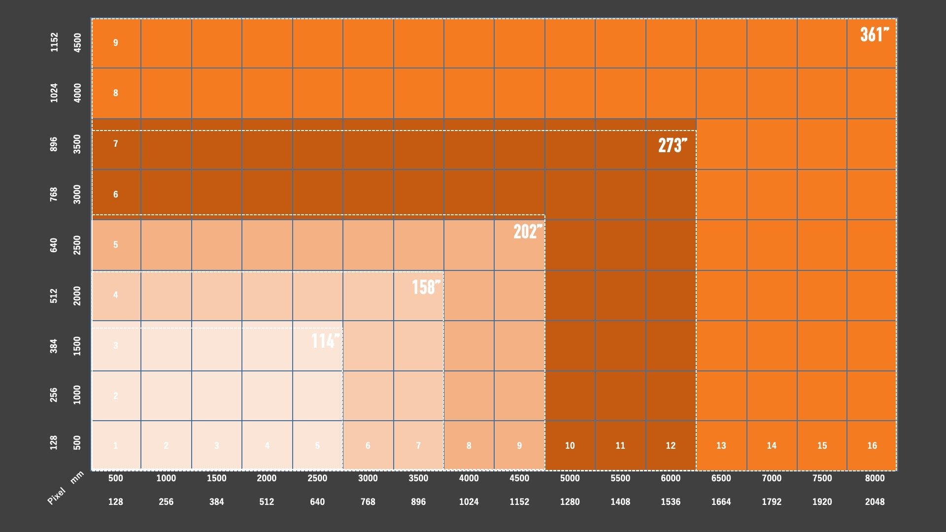 | インチ数 | タイル数 | サイズ(mm) | 解像度(px) | レンタル料金 | ||